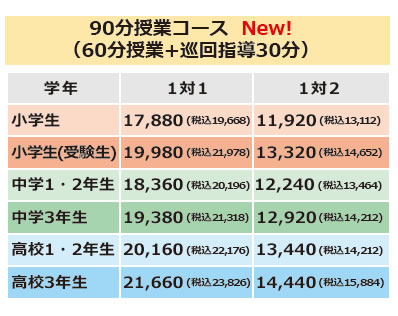 | 中学3年生 | ¥10,800(税込¥11,968) | ¥16,320(税込¥17,952) | |